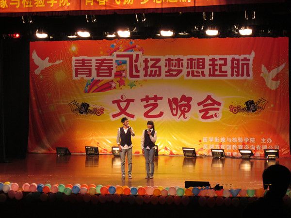 2014年5月8日晚,医学影像与检验学院“青春飞扬 梦想起航”文艺晚会在老员工活动中心成功举办。来自学校组织部、宣传部、员工处、团委、图书馆、关工委等职能部门和兄弟学院的领导、老师出席了本场晚会,与广老员工共同观看演出。