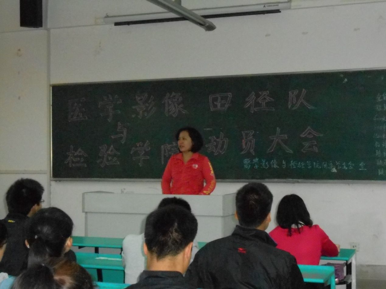 2014年4月11日下午,医学影像与检验学院田径队动员大会在西教106室成功召开。院团委书记魏巍、副书记陶香林出席大会。