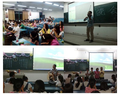 月到中秋分外明,军训离家倍思亲。为了给因军训而不能与家人团聚的2013级新生送上节日的祝福,让他们感受到皖医这个大家庭的温暖。9月19日晚,医学影像与检验学院为新生举办了中秋联谊晚会。2013级辅导员徐梦琪及部分留校老生陪新生们一起度过了一个难忘的中秋之夜。 欢歌笑语,处处绽放 三个专业的12个班级都为这次晚会进行了精心的准备,虽然白天还要在炎炎烈日下开展军训,但是丝毫没有影响到同学们的热情,从借用教室、准备道具到购买礼品、装饰会场,大家都忙得不亦乐乎。晚会上同学们准备的节目也是精彩纷呈,歌曲表演、吉他弹唱、小提琴演奏、小品相声博得了大家的阵阵掌声,教学楼里处处洋溢着节日的欢乐气氛。