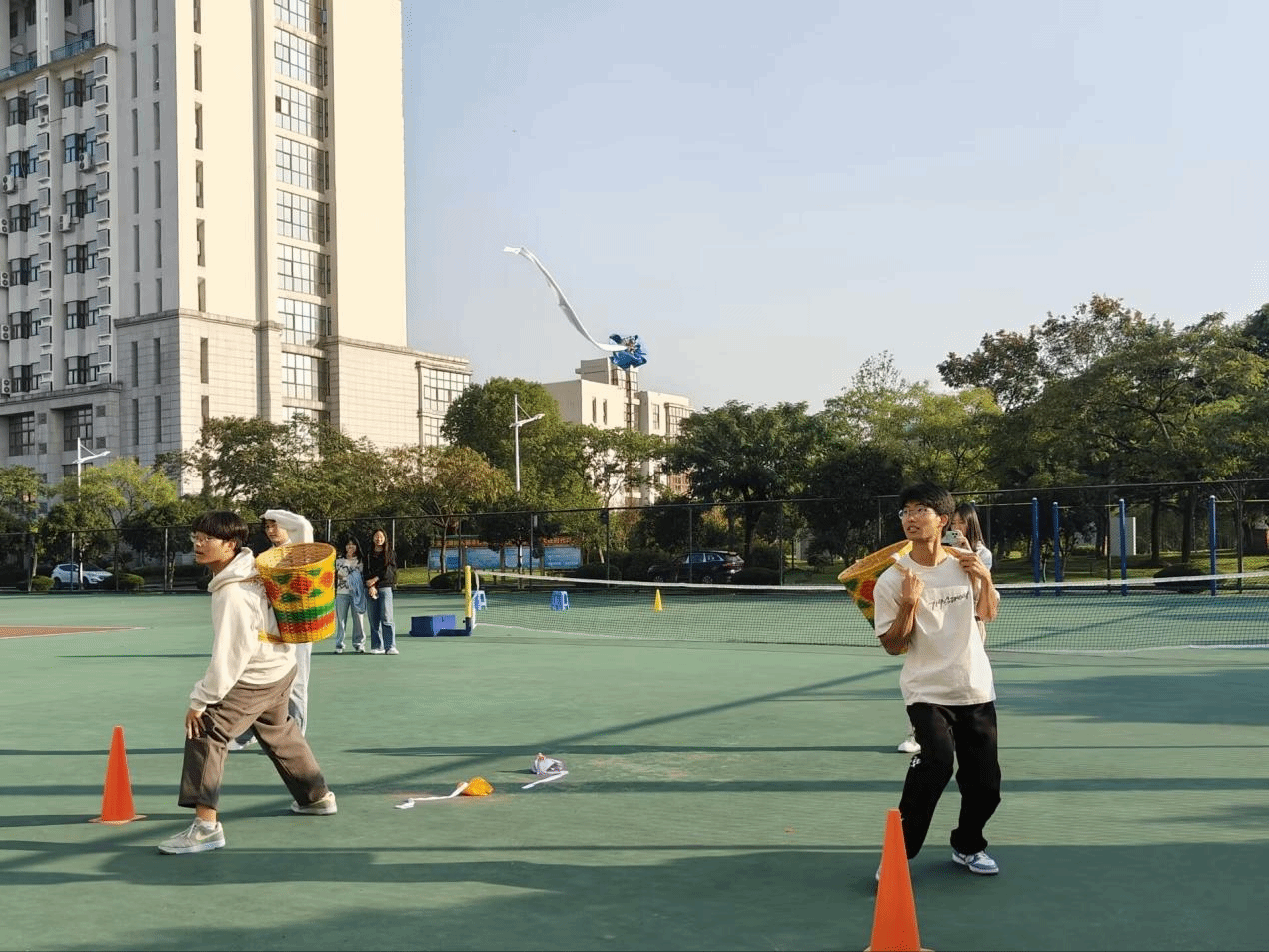 为加深同学们对不同民族体育文化的了解,提高个人身体素质,学院于近期顺利举办了“健身竞技,民族体育”趣味运动。本次趣味运动包含“三人板鞋”和“背篓绣球”两个壮族传统体育项目,比赛采用积分制,三人板鞋依据时间排名计算积分,而背篓绣球则按照投中的有效球个数计分,两项比赛积分最高者胜出。
