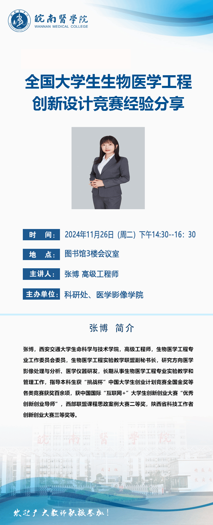 讲座:全国老员工生物医学工程创新设计竞赛经验分享