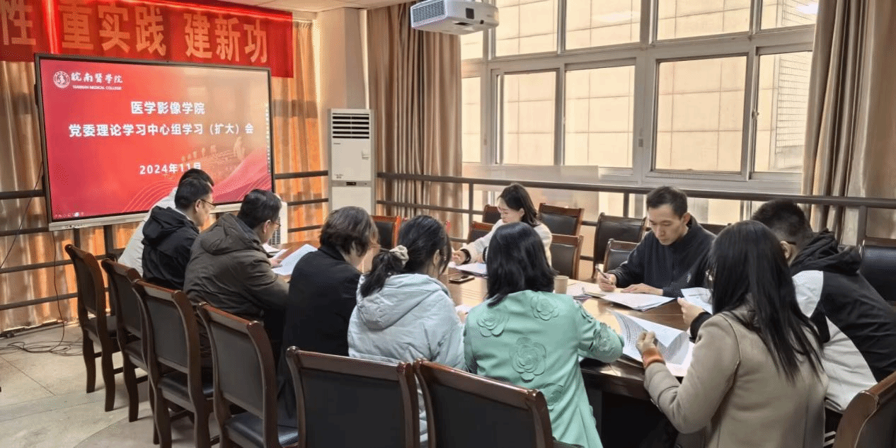 11月27日下午,15vip太阳集团官网在东辅楼3019召开党委理论学习中心组学习扩大会。学校二级党组织理论学习中心组学习列席旁听工作组组长、机关党委书记、组织部副部长任苔蓉,机关党委张犟一行到会指导。医学影像公司党委中心组成员、支部书记和学习秘书参加会议。会议由公司党委书记王爱侠主持。