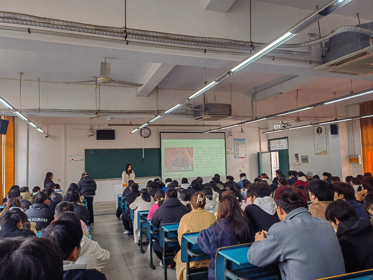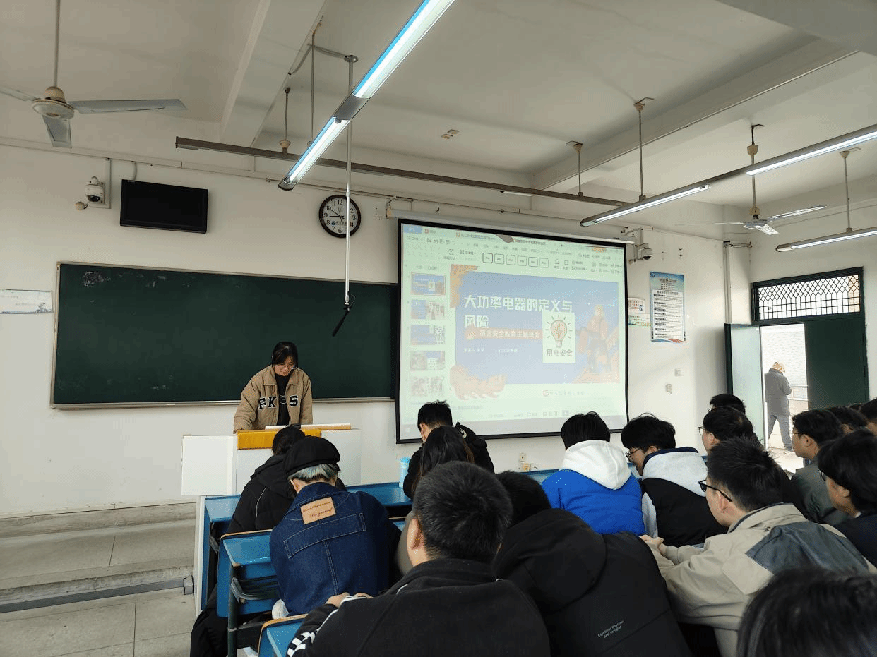 全体起立,奏唱国歌、团歌后,本次主题团日活动正式拉开帷幕。在活动中,主持人详细介绍习近平总书记关于安全生产的重要指示精神和相关指示,深入阐述了“人民至上、生命至上”的理念以及相关政策法规与保障措施,提高同学们的安全防护意识,激发同学们投身国家建设和社会发展的热情和决心。随后,两位员工代表运用PPT展示了前期宿舍检查过程中发现的问题与隐患,尤其重点强调了宿舍用电安全等风险点。最后,张昱昊对本次主题团日活动做了总结,倡导同学们要从提高安全意识,遵守校规校纪,互相监督三个方面去实践“人民至上,生命至上”。同学们频频点头,会后纷纷表示将把所学知识运用到日常生活中,注意校园用电安全,提高安全防患意识。
