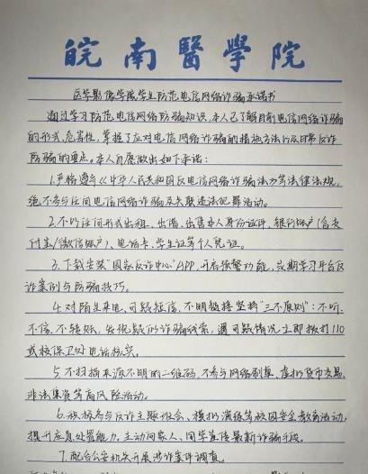 硬笔书法活动现场,同学们全神贯注,严格依照规范要求,在A4纸上工整地抄写反诈承诺书。一横一竖,尽显认真态度;一撇一捺,承载反诈决心。大家用工整娟秀的字迹,将反诈承诺凝于笔尖、铭刻心间,在书写过程中进一步强化自身反诈意识,以笔墨为武器,共同筑牢校园反诈防线。