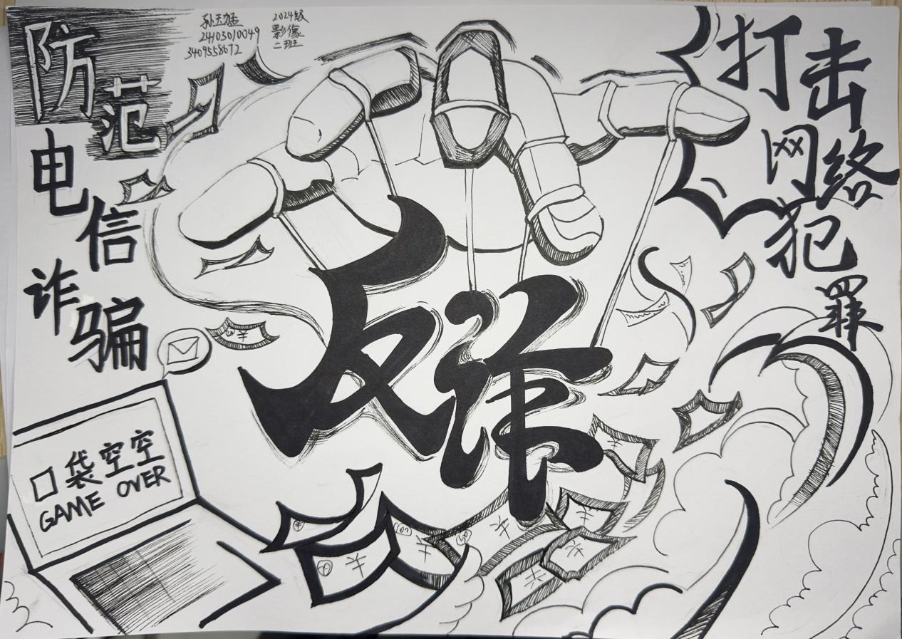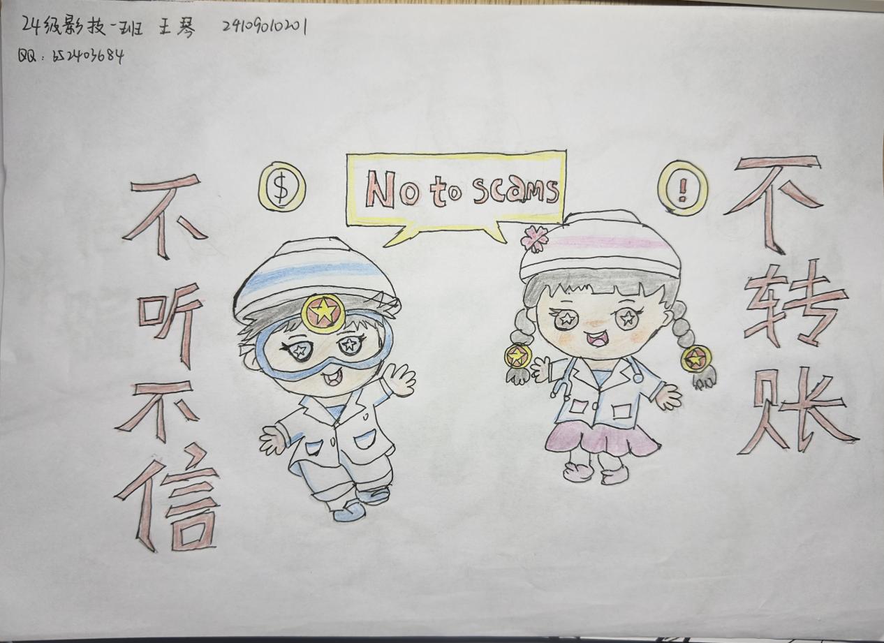 此次绘画大赛凭借新颖的形式成为活动亮点,吸引了众多同学积极参与。同学们紧扣“不听、不信、不转账”“国家反诈APP装了吗”等核心主题,充分发挥创意灵感。他们巧妙运用水彩、油画、漫画等多样化绘画形式,设计出风格迥异、生动有趣的表作品。这些充满巧思的绘画作品,以鲜活、接地气的方式传播反诈知识,让严肃的反诈宣传变得生动有趣,更易深入人心。
