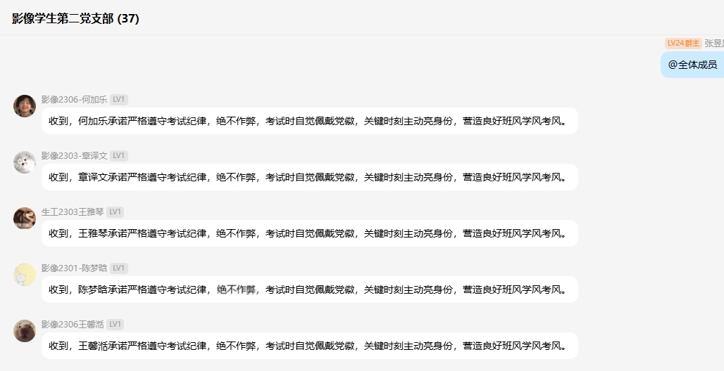此外,学院着力加强考风考纪监督与帮扶关怀。在强化纪律约束的同时,“一站式”员工社区也注重人文关怀。员工第二党支部组织成绩优异的员工党员开展考前复习答疑、心理调适辅导,帮助学业困难员工缓解焦虑情绪,掌握科学复习方法,鼓励他们通过自身努力取得真实成绩。员工会也积极行动起来,提醒同学们遵守考试时间,带齐相关证件,以平和心态迎接考试。