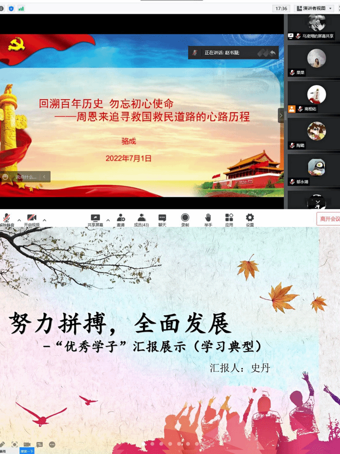 7月1日上午,学院各支部书记和先进典型围绕“喜迎二十大,党课我来讲”主题,结合党的历史、习近平新时代中国特色社会主义思想、身边优秀共产党员的典型事迹讲授,为老师与同学们进一步厚植了家国情怀,点燃了青春梦想。大家更加坚定感党恩、听党话、跟党走的信心与决心,把爱国情、强国志、报国行自觉融入实现中华民族伟大复兴的奋斗之中。