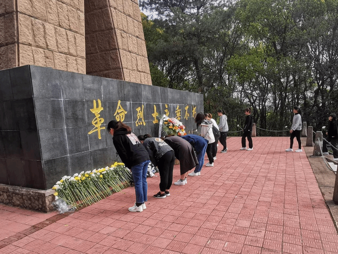 早上八点,同学们来到神山烈士纪念碑集体默哀,并有序献上鲜花,向英雄表达了自己的敬意;随后,各团支部书记分别上前作为员工代表发言,他们向同学们介绍了烈士们的英勇事迹,诵读烈士家书,表达了自己对英雄的敬仰之情以及努力学习报效祖国的决心;最后,员工第五党支部书记骆成、副书记张昱昊要求同学们进一步坚定理想信念,初心使命,赓续共产党人精神血脉,切实增强“四个意识”、坚定“四个自信”、做到“两个维护”,不断提高政治判断力、政治领悟力、政治执行力,为加快建设经济强、百姓富、生态美的新阶段现代化美好安徽贡献自己的力量。