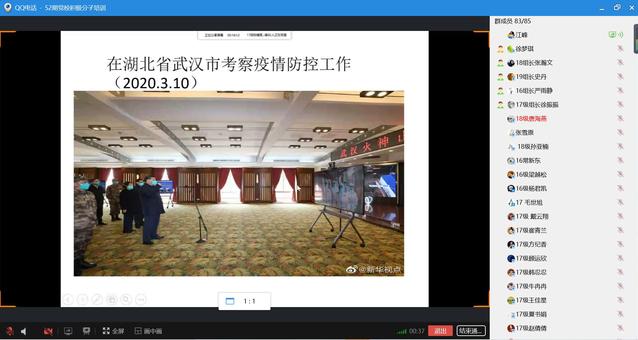 发展对象学员在线学习了《< 十九大党章公开课>二十讲》、《解读< 关于新形势下党内政治生活的若干准则》、《国际视角下的中国共产党》、《全面小康,14亿人的成功》等内容,并学唱国际歌,观看了《榜样4》和《钟南山》、《生死金银潭》等抗疫视频。