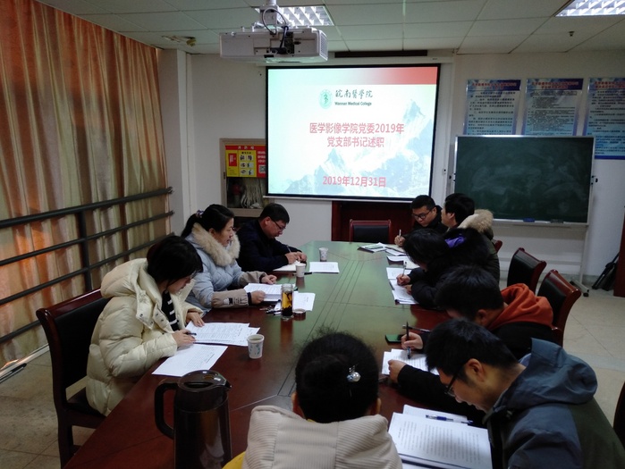 为贯彻落实全面从严治党要求,加强对基层党支部建设工作考核,提高党支部建设质量,12月31日上午,医学影像公司党委在学院会议室召开2019年度党支部书记述职评议考核会议,校团委书记许国飞老师、财务处李一老师,公司党委委员、各党支部书记参加,会议由公司党委书记张建英主持。