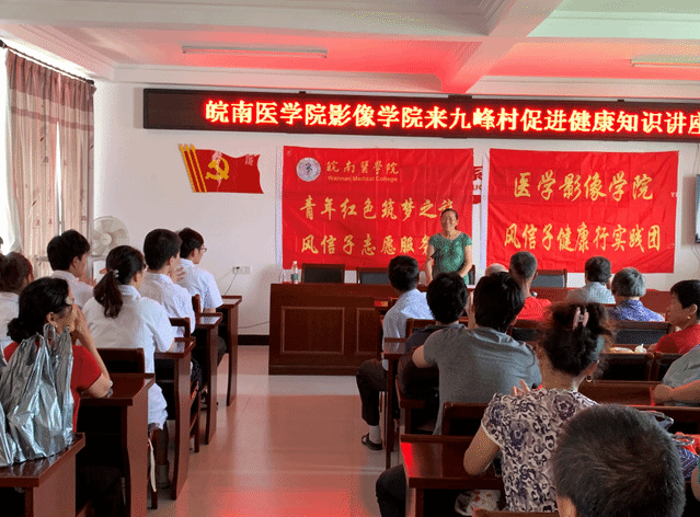 红色宣讲走进泾县黄村镇九峰村村部,风信子”报告团在村部党员活动室,为当地党员群众带来了一场特别报告会。宣讲者在一个个具体的生活案例讲解中,为当地村民讲解各种医学小常识,向村民们介绍医学防护知识,随后,志愿团团员们与村民们积极互动,解答相关医疗知识。