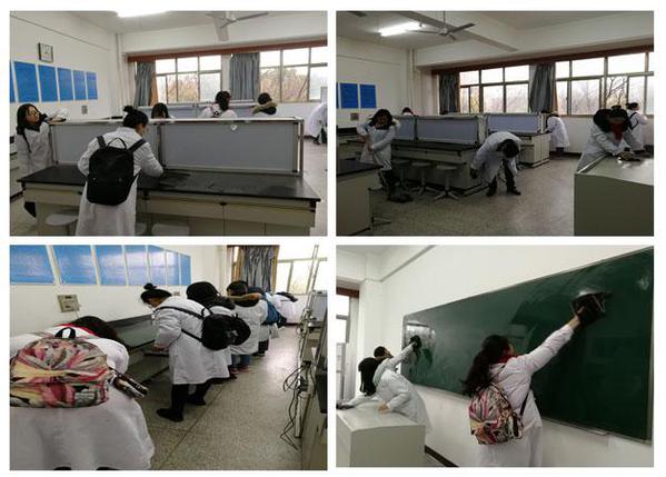 为将学习雷锋的活动贯彻落实到实际中,随后,支部教师党员张建英、魏巍、张解和同第三党支部的入党积极分子同学们一起来到皖南医学院2号实验楼的影像观片实验室。三位老师身先士卒,带头做表率,带领同学们扫地拖地,清理抽屉,擦拭桌子、黑板、板凳、门窗玻璃等。众人拾柴火焰高,原本布满灰尘的实验室渐渐变得焕然一新,这时大家才注意到彼此身上的白大褂都已沾上了水渍、灰尘,但看着整洁的实验室,大家还是发自肺腑地笑了。