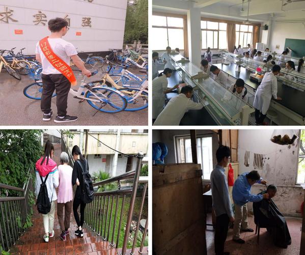 医学影像学2班同学把学校门口乱停乱放的共享单车摆放整齐,并化身“交通协管员”,维持学校周边的路**通秩序,为营造校园周边良好的交通环境贡献微薄之力;医学影像学3班于5月4日当天前往学校实验室擦桌、扫地、清理窗台窗户,让上课的老师和同学以愉悦的心情专心实验;医学影像学3班和4班同学在5月6日,前往芜湖市平安阳光老年公寓,并带上了自制小礼品和水果并打扫卫生、晾晒被褥,有的同学为老人表演节目,有的与老人们聊天、下棋,还有同学边给老人按摩捶腿,给老人们讲解夏天的养生之道,介绍一些方便实用的生活小窍门和健康知识给老人。通过此次活动,同学们感受到热心服务的快乐,更加学会了如何关心和爱护老人、尊老敬老,提高劳动能力,增加了大家义务服务的经验。