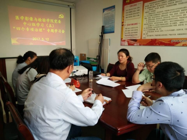 为全面落实省委教育工委、省教育厅和公司党委关于“四个专项治理”的工作部署,5月12日,医学影像与检验公司党委召开中心组学习(扩大)会,开展“四个专项治理”部署动员工作。公司党委书记、副经理张建英,副经理许国飞和公司党委委员、党支部书记参加会议,会议由张建英主持。